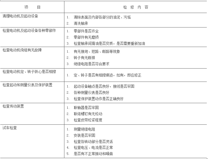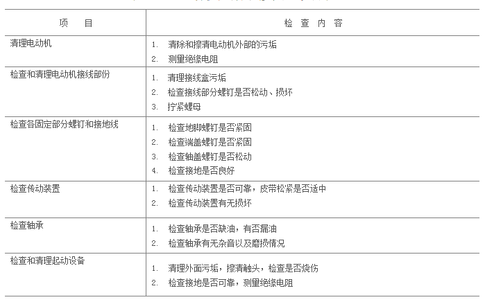 表1 電動(dòng)機(jī)定期小修檢查項(xiàng)目表