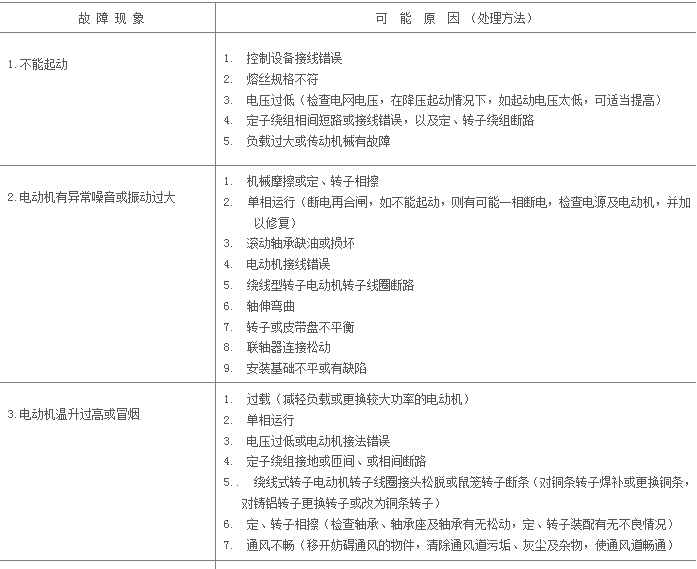 表3 三相異步電動(dòng)機(jī)的常見故障