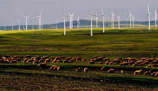 看著茫茫草原的一臺(tái)臺(tái)轉(zhuǎn)動(dòng)的風(fēng)機(jī),我的心是雀躍的,我很興奮,因?yàn)樗膲延^同旅游的美景來比,是另一道美麗的風(fēng)景線!